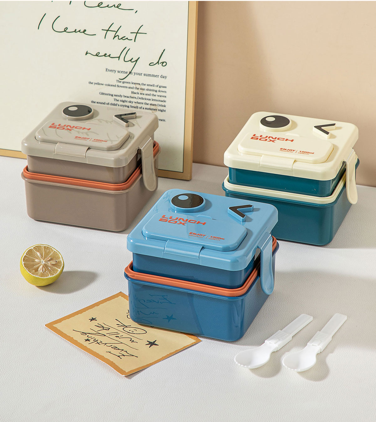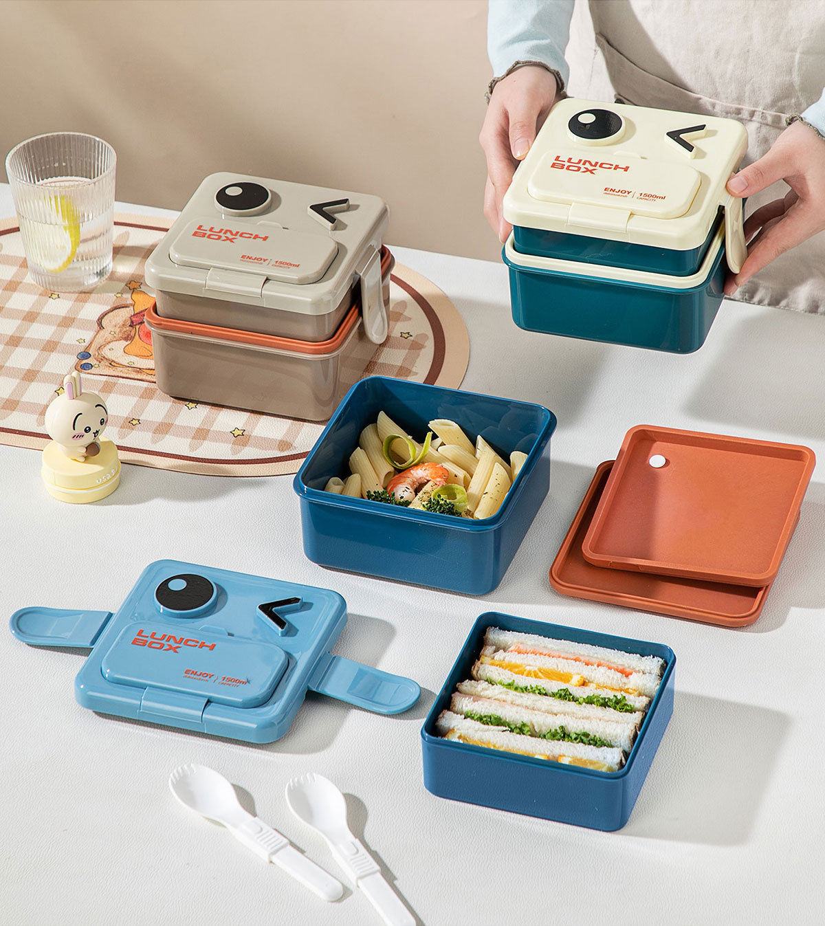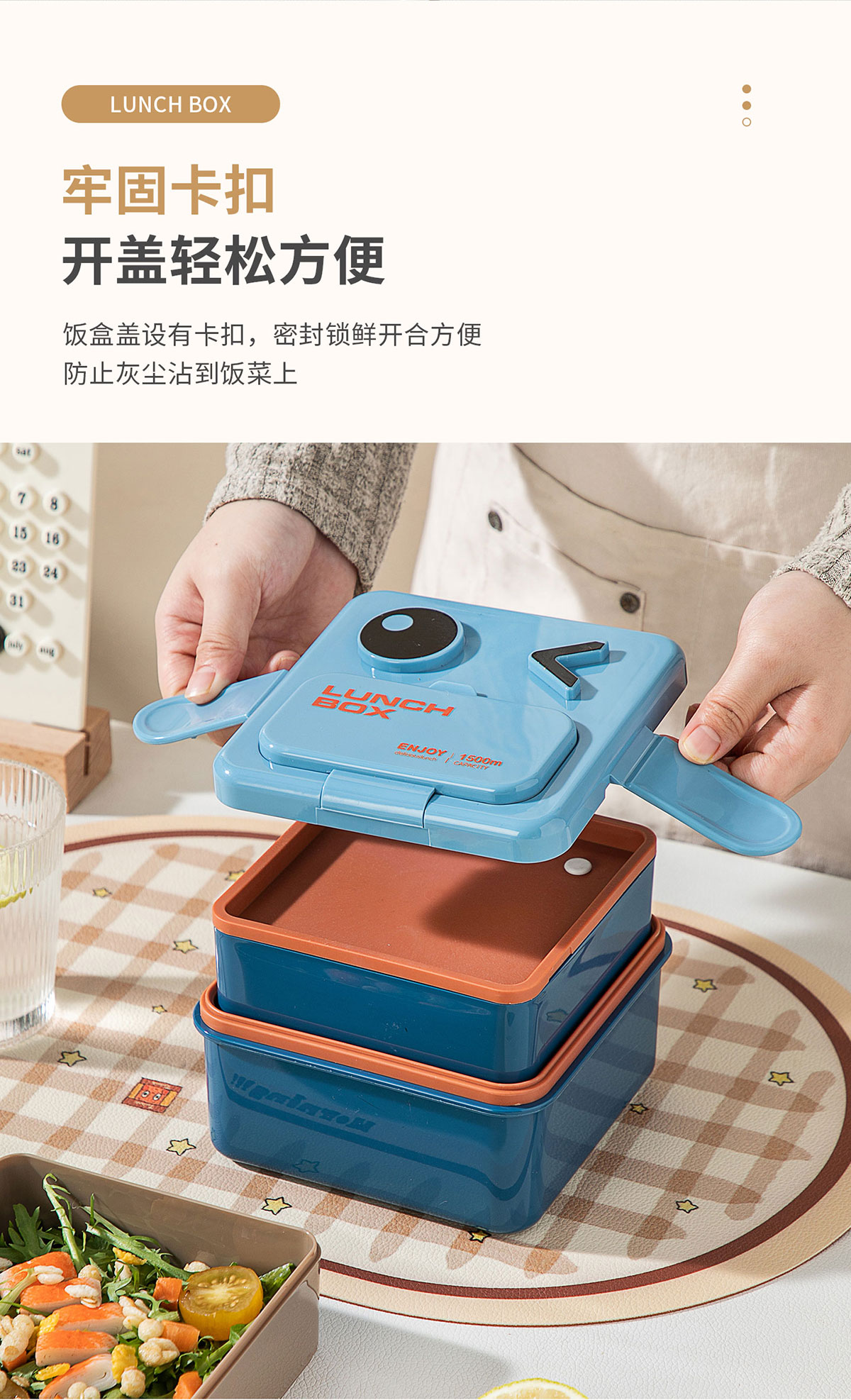 萌趣笑臉雙層可收納飯盒1500ml