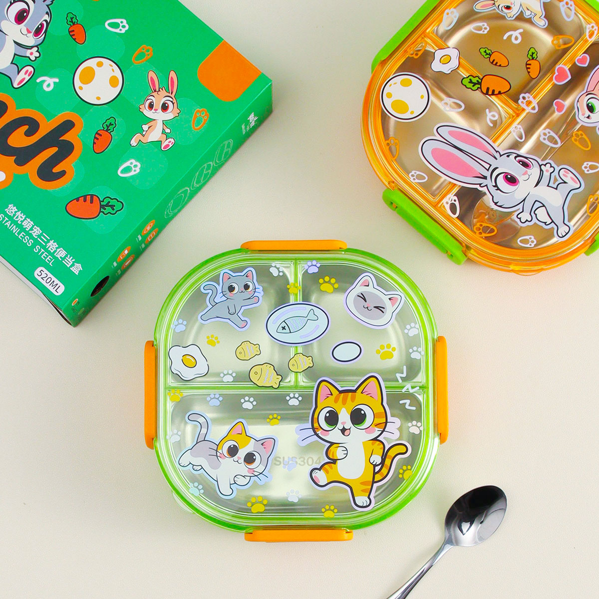 悠悅萌寵三格便當(dāng)盒(520ml)