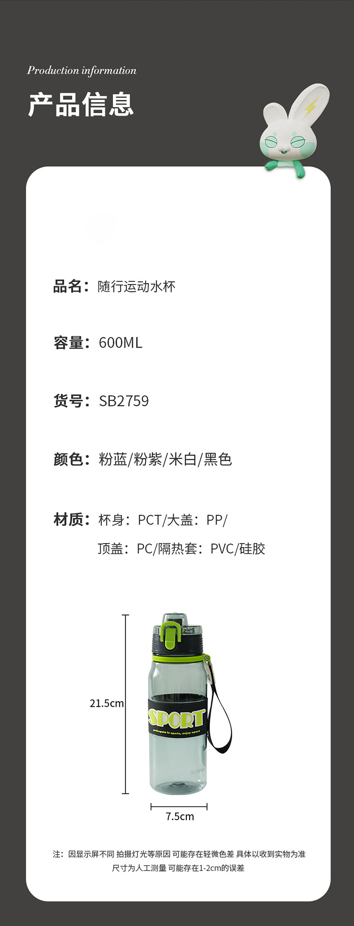 隨行運(yùn)動(dòng)水杯(600ml) 彩盒裝/OPP裝