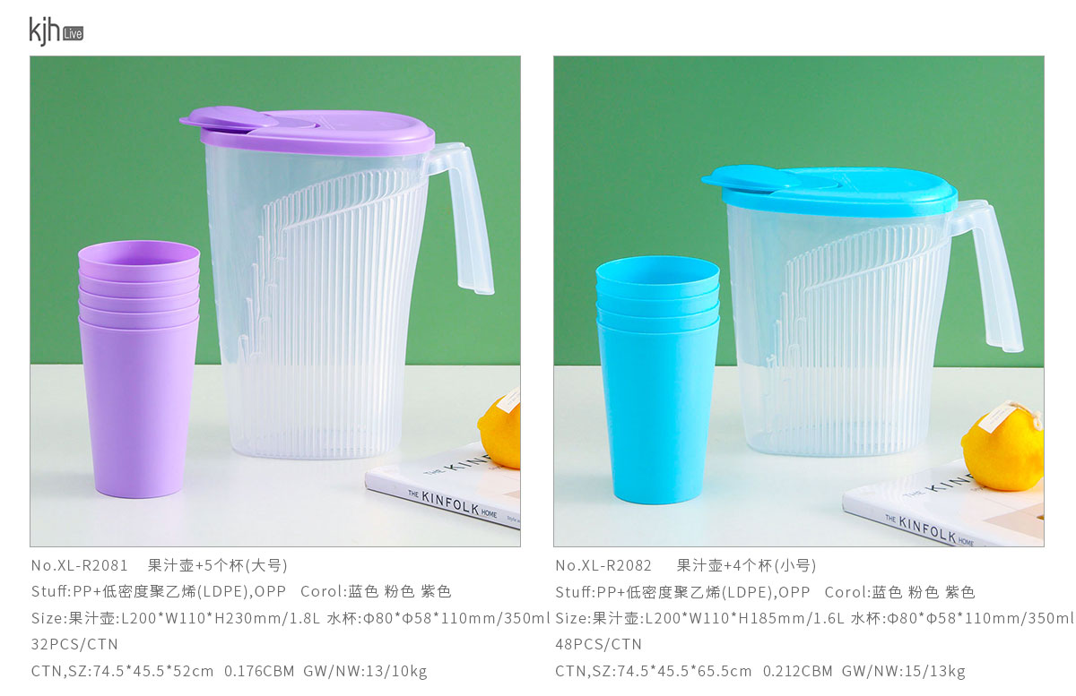 XL-R2082(小號(hào)):果汁壺:L200*W110*H185mm/1.6L水杯:Φ80*Φ58*110mm/350ml